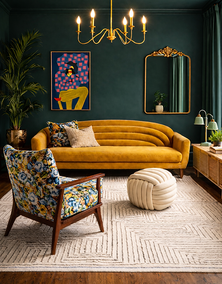 SALON CHALEUREUX VERT ET MOUTARDE